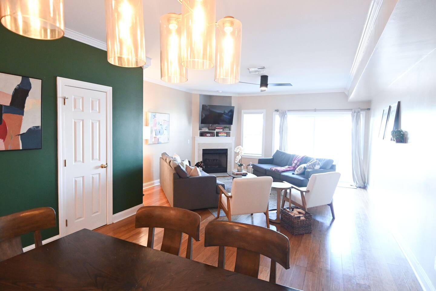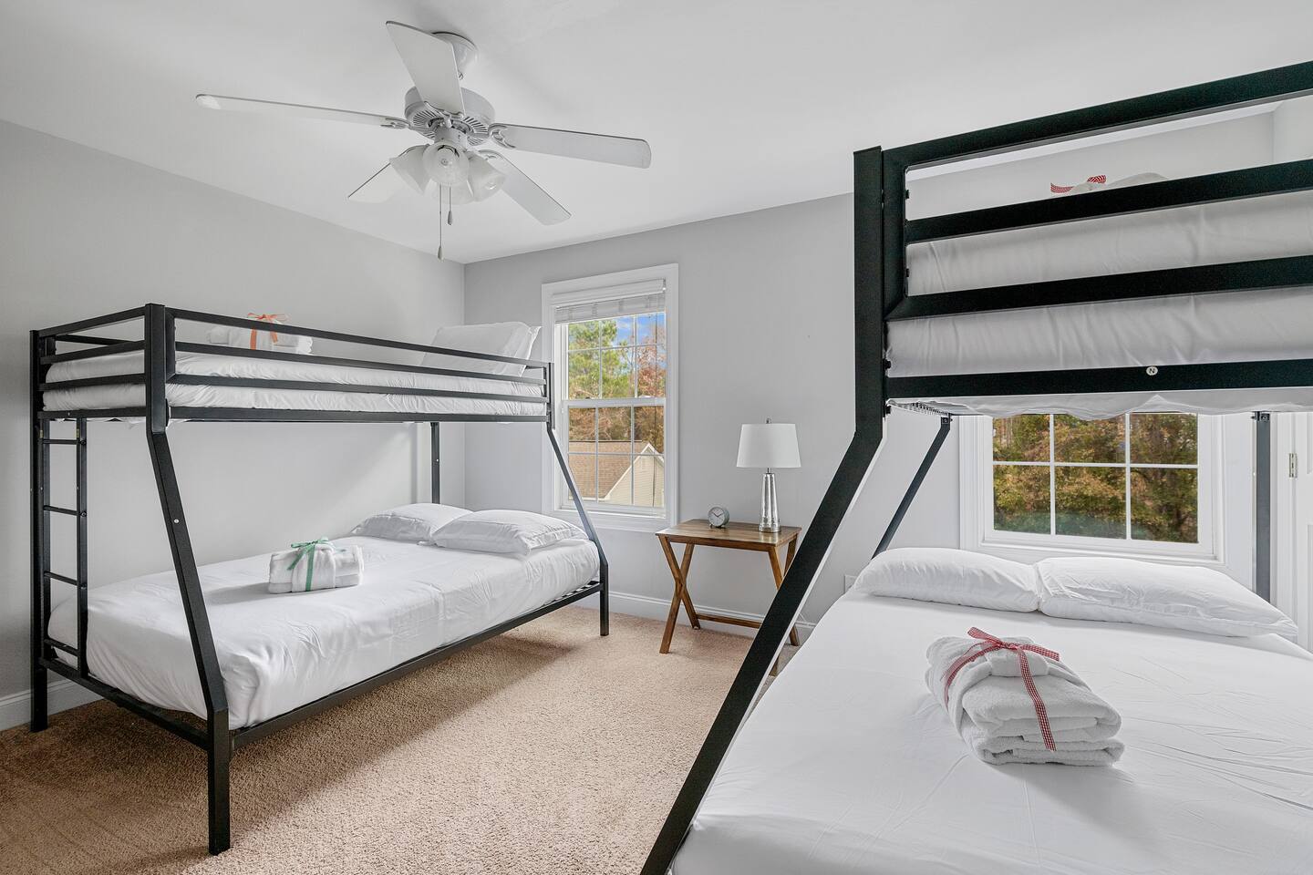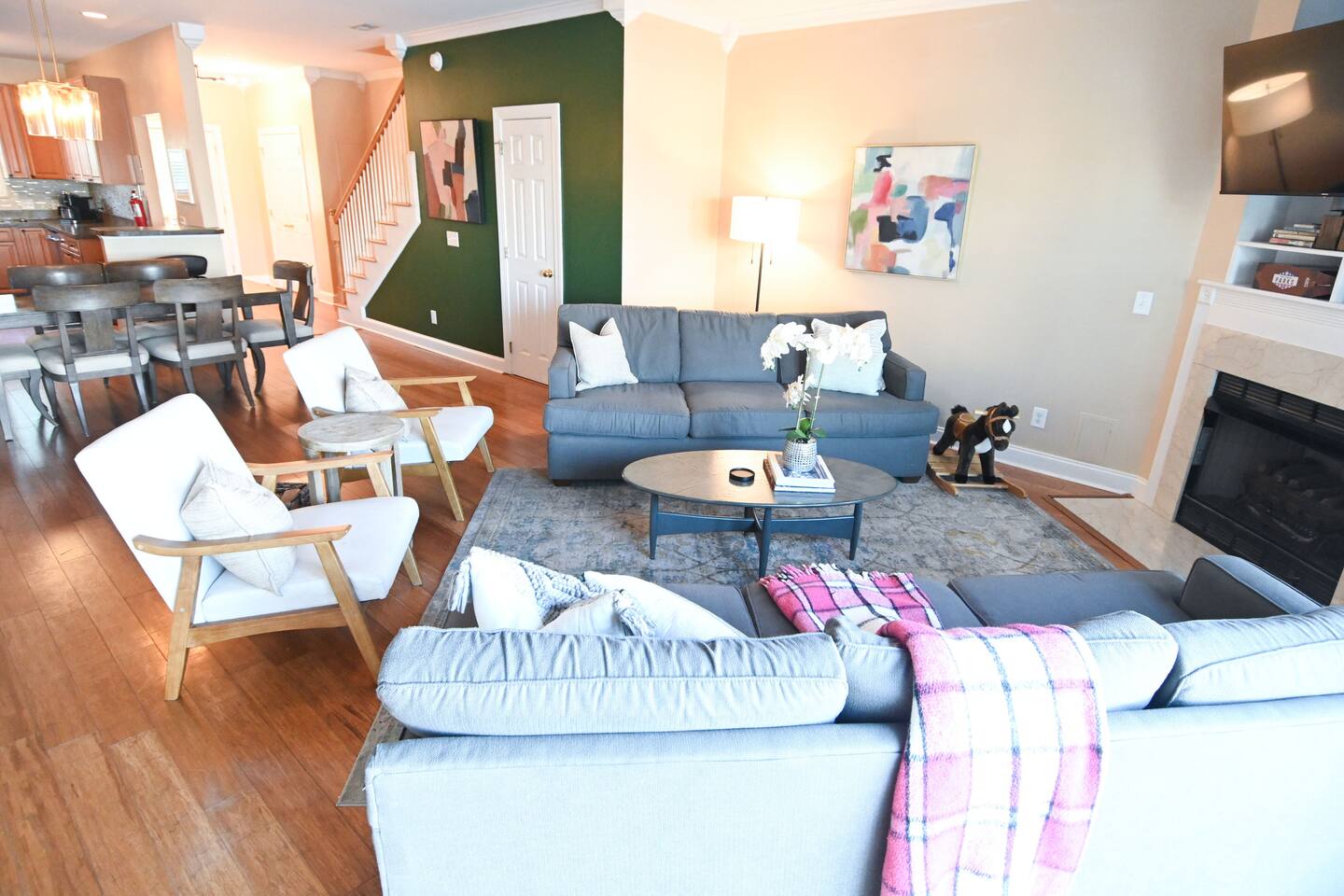 Welcome to 2 Lowcountry Lakehouse, your home away from home on Lake Palmetto! City of North Charleston STR Permit #: 2025-0399 Whether you are coming for work or play, your family will be close to everything here! Located in the heart of the Charleston metro area, a quick hop on I-26 will take you to downtown/Mt. Pleasant/area beaches within 10-20 minutes. Park Circle recreation and restaurants are within a 5-10 minute drive, and N. Charleston attractions such as the Performing Arts Center and Tanger Outlets (in addition to numerous other restaurants and shops) are within a 5-15 minute walk! Our home is spacious and airy. You'll enjoy connection with your group as you move throughout the open concept and full-sized, well-equipped kitchen, dining, living, and deck areas. There is a convenient powder room on the first floor, adjacent to these common areas. Our home sits on the lake, so you can swim or cast a line directly from our dock--and, we offer 2 kayaks for your use! We strive to provide a cozy space that will facilitate connection with your group and meet the needs of even our youngest guests! On the second floor, you'll find two bedrooms, two bathrooms--all with great views--and a laundry area. On the third floor, you will find one large bedroom, one bathroom, and a lovely second seating area with a separate door--offering an additional space for work, play, or sleep! Features: - Bedroom #1: King Bed with en suite bathroom - Bedroom #2: Two Twin over Full Bunk Beds with en suite bathroom - Bedroom #3: Two Queen Beds with en suite bathroom -Bedroom #4: Sofa/ another option for a travel crib - Living Room: Sofas, Modern Accent Chairs + TV - Washer and Dryer - Grand outdoor porch with seating overlooking the lake, plus a dock and two kayaks. -Full Kitchen -Dining area -Parking: 2 spots for vehicles in front of each house with extra parking close by. Note: City quiet hours are from 10pm to 8am. Whether you are here for work or play, we look forward to providing you an excellent home-base for your stay in Charleston! City of North Charleston STR Permit #: 2025-0399