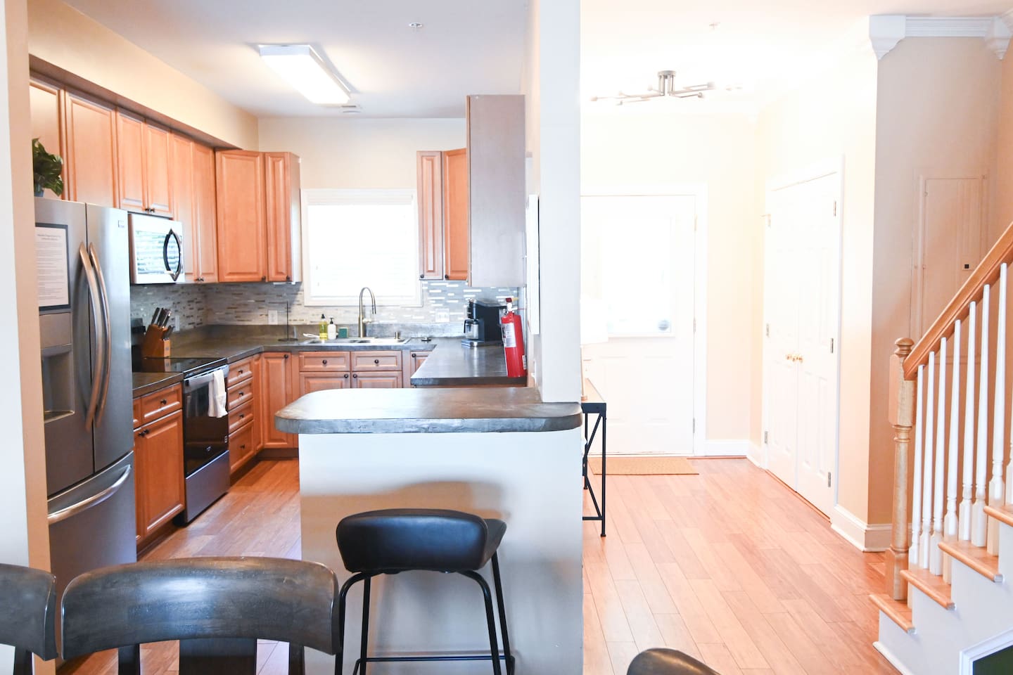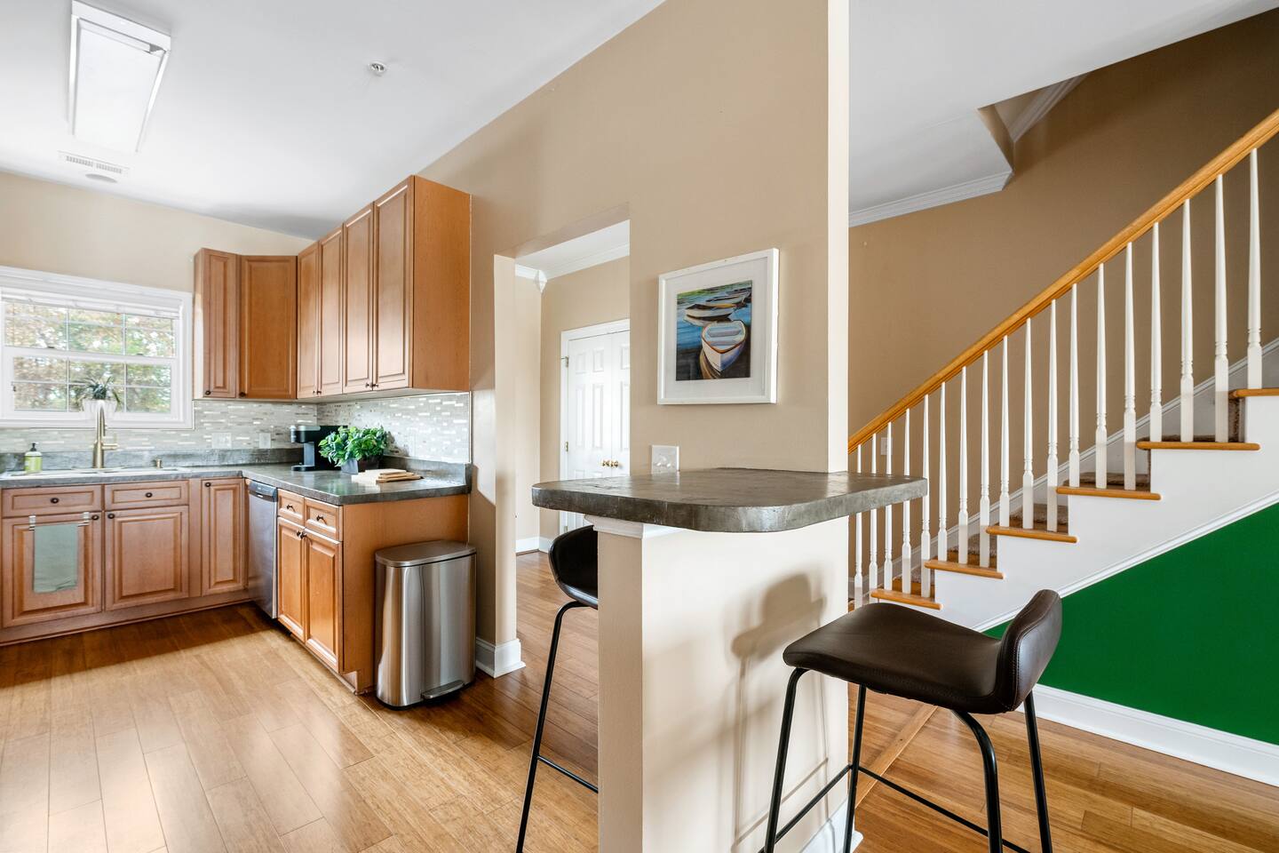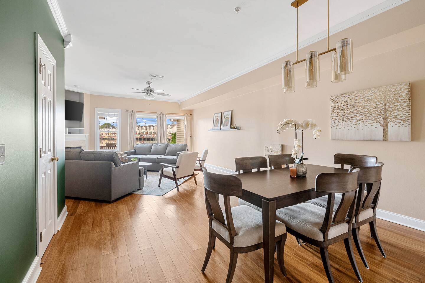 Welcome to 2 Lowcountry Lakehouse, your home away from home on Lake Palmetto! City of North Charleston STR Permit #: 2025-0399 Whether you are coming for work or play, your family will be close to everything here! Located in the heart of the Charleston metro area, a quick hop on I-26 will take you to downtown/Mt. Pleasant/area beaches within 10-20 minutes. Park Circle recreation and restaurants are within a 5-10 minute drive, and N. Charleston attractions such as the Performing Arts Center and Tanger Outlets (in addition to numerous other restaurants and shops) are within a 5-15 minute walk! Our home is spacious and airy. You'll enjoy connection with your group as you move throughout the open concept and full-sized, well-equipped kitchen, dining, living, and deck areas. There is a convenient powder room on the first floor, adjacent to these common areas. Our home sits on the lake, so you can swim or cast a line directly from our dock--and, we offer 2 kayaks for your use! We strive to provide a cozy space that will facilitate connection with your group and meet the needs of even our youngest guests! On the second floor, you'll find two bedrooms, two bathrooms--all with great views--and a laundry area. On the third floor, you will find one large bedroom, one bathroom, and a lovely second seating area with a separate door--offering an additional space for work, play, or sleep! Features: - Bedroom #1: King Bed with en suite bathroom - Bedroom #2: Two Twin over Full Bunk Beds with en suite bathroom - Bedroom #3: Two Queen Beds with en suite bathroom -Bedroom #4: Sofa/ another option for a travel crib - Living Room: Sofas, Modern Accent Chairs + TV - Washer and Dryer - Grand outdoor porch with seating overlooking the lake, plus a dock and two kayaks. -Full Kitchen -Dining area -Parking: 2 spots for vehicles in front of each house with extra parking close by. Note: City quiet hours are from 10pm to 8am. Whether you are here for work or play, we look forward to providing you an excellent home-base for your stay in Charleston! City of North Charleston STR Permit #: 2025-0399