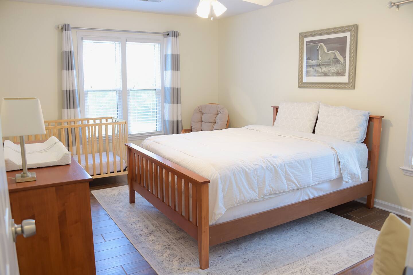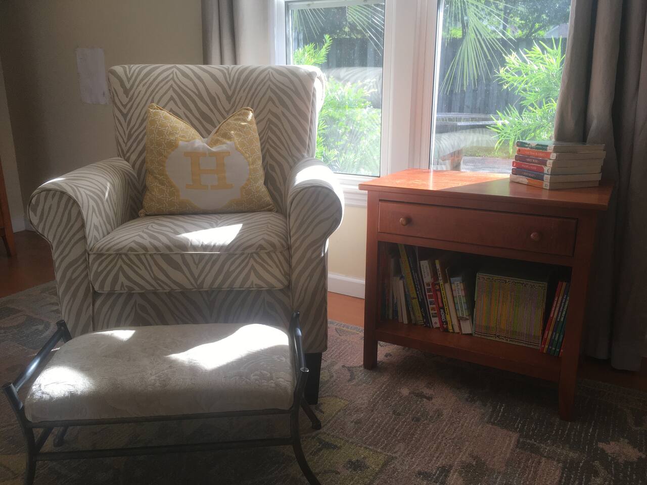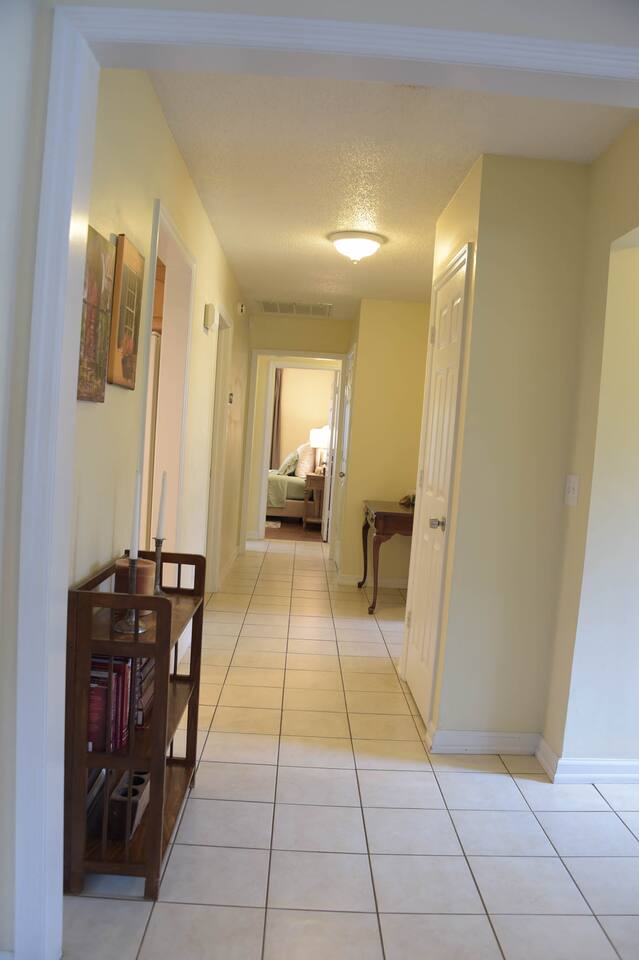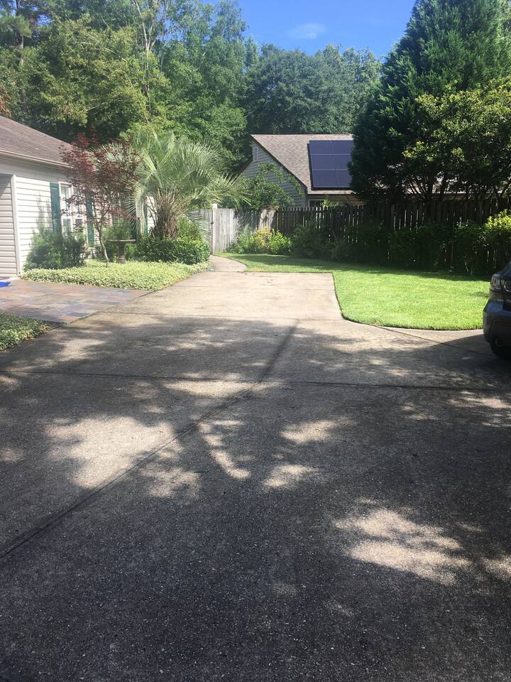 Our home makes a great "home base" for busy days at work or at play in the Charleston area. You will appreciate quick freeway access which makes getting around a breeze. We are located: 25 minutes from Mt. Pleasant, downtown Charleston, & West Ashley's plantations; 30 minutes to IOP/Sullivan's beaches; 15 minutes to Summerville, the airport, & Tanger Outlets; 5-10 minutes to grocery stores, mall, Target/Wal-mart, hospital & Wannamaker Park (playground, water park, etc.). We own the entire property and have both sides of our duplex available on AirBnB (the other side is Child-Friendly Retreat Near Charleston, 2). Our home is approximately 1650 sq ft. Bright living room has stylish & comfortable furniture, and lots of good books, board games, and movies to enjoy. Smart TV, Blu-Ray/DVD player, Roku, & digital antenna. Well appointed kitchen should you like to enjoy some baking or cooking while you're here! Due to allergies/asthma, our home is pet, smoke, and carpet free. We have three bedrooms: The master has a Nectar brand king sized bed, dual closets, ceiling fan, direct access to the back patio, en suite bathroom with walk in shower, and black out curtains. The second has a Sealy Posturepedic queen bed, standard-sized crib (height appropriate for toddler), dresser with removable changing pad, glider chair, ceiling fan, walk in closet, and black out curtains. The third has a twin bunk bed, accent chair, children's rocking chair, play kitchen, children's books & toys, ceiling fan, black out curtains, a dresser for clothes, and small closet. Bedrooms do not have TVs. Dining room has seating for 6, and there is a separate, adjacent office nook with two desks and a door. House is child-friendly & well equipped to accommodate little ones: crib, bunk bed, 2 reading/nursing chairs (one is a glider), black-out curtains & changing table; hall bathroom with a tub & step stool, Keekaroo high chair; KidCraft learning tower/kitchen helper; rocking horse; rope disk swing, small (covered, netted) trampoline & several other outdoor toys. If you aren't bringing children, don't worry--baby equipment is easily tucked away. Private fenced back yard has lots of room for little ones to run around and explore. The backyard also has a covered patio with outdoor seating and a propane grill. Property is well lit from the street to the backyard by automatic exterior and security lighting. Off street parking is available for 2 to 3 cars, and additional cars must park on the street. Neighborhood has a tennis court & playground, & our house is located 2 blocks from a fire station in the event of an emergency.