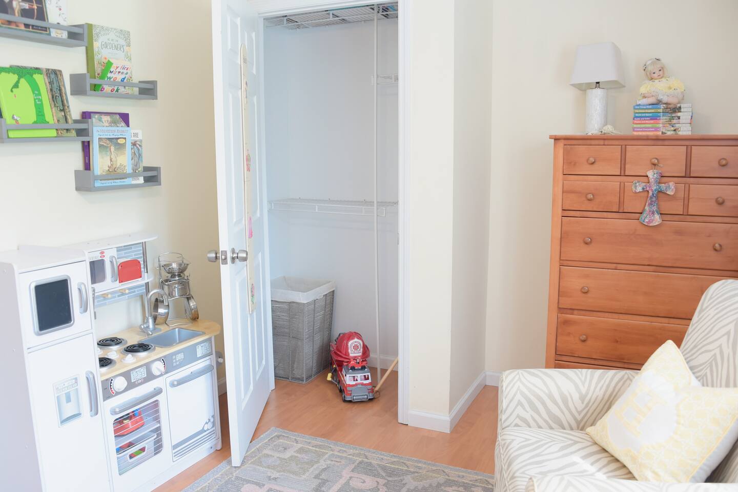 One of our favorite things to do is go on a walk or ride bikes through our beautiful neighborhood, which also has a playground, a reservoir front park, and tennis courts, all short walks away. Our neighborhood is regularly monitored by police (watch those stop signs!) and grocery stores, restaurants, and shops are right outside the neighborhood.